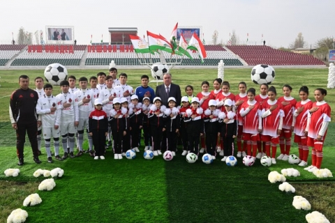 Президенти Тоҷикистон Эмомалӣ Раҳмон дар ноҳияи Бобоҷон Ғафуров Муассисаи давлатии мактаби махсуси варзишӣ оид ба футболро ифтитоҳ намуданд