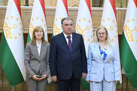 1 июл Асосгузори сулҳу ваҳдати миллӣ - Пешвои миллат, Президенти Ҷумҳурии Тоҷикистон муҳтарам Эмомалӣ Раҳмон ноиби Президенти Бонки умумиҷаҳонӣ Антонелла Бассани ва ноиби Президенти Корпоратсияи Байналмилалии Молиявӣ Хела Шейхроухуро ба ҳузур пазируфтанд.